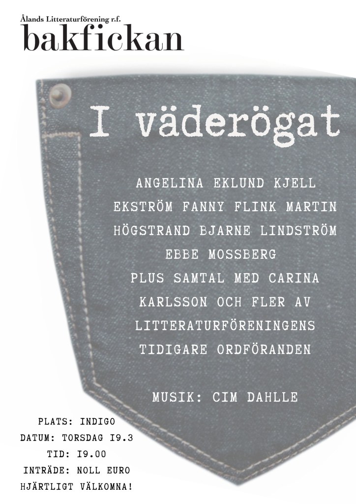 Äntligen är det dags! Mariehamns litteraturdagar väntar runt hörnet, och Bakfickan, litteraturföreningens arrangemang med åländska författare äger rum torsdag 19 mars kl. 19.00 på Indigo. Fritt inträde.